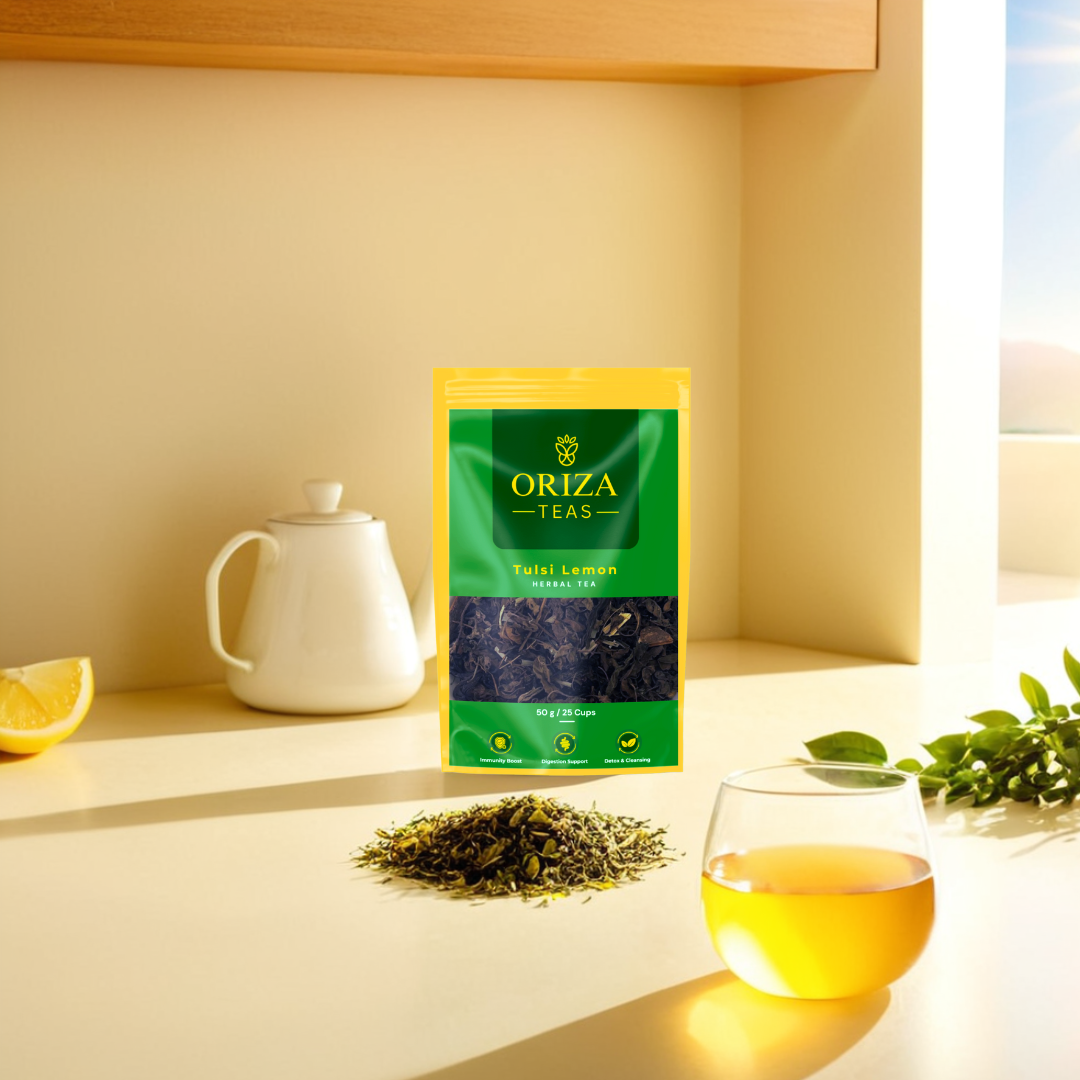 The Tulsi Lemon Oriza Teas | Packet is a perfect blend of refreshing lemon and calming tulsi. I love the zesty yet soothing taste. It helps relieve my acidity and keeps me energized throughout the day. A must-have in every kitchen!